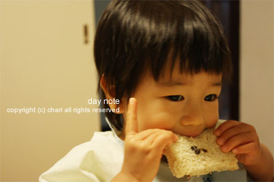 なぜか人差し指立てて食べてます (´∀`*)プッ