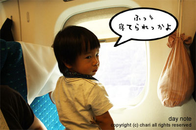 朝早くから電車で連れまわしたんで