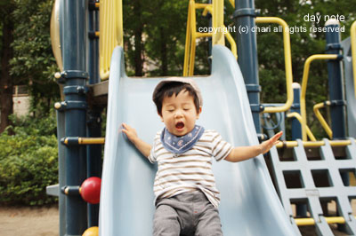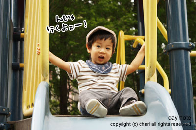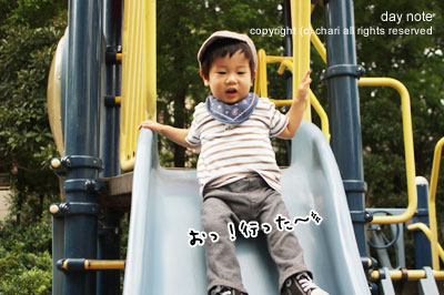 んで、すべり台の練習。