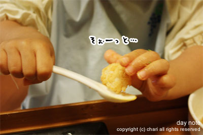 なぜかスプーンに乗せるのが楽しくなってきた様子。