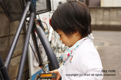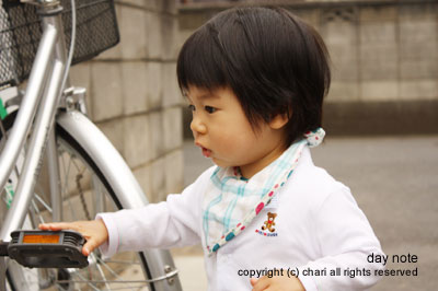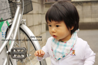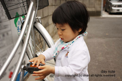 その後、お向かいさんの自転車で遊びました。
