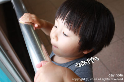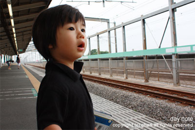 ばぁばと駅にじぃじを迎えに行きます。