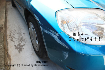 ダンナくんが斜め向かいのお宅の塀にこすっちゃいました。