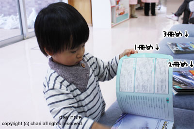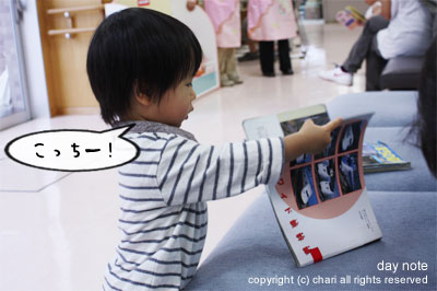 ちぃは保健センターに置いてある絵本を散らかしまくってました。