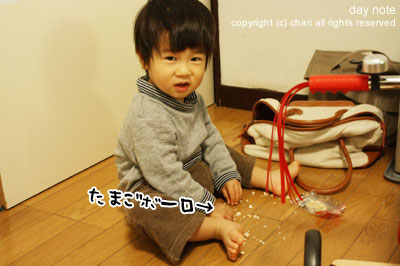 しばらくするとまた床にボーロのかけらを発見。